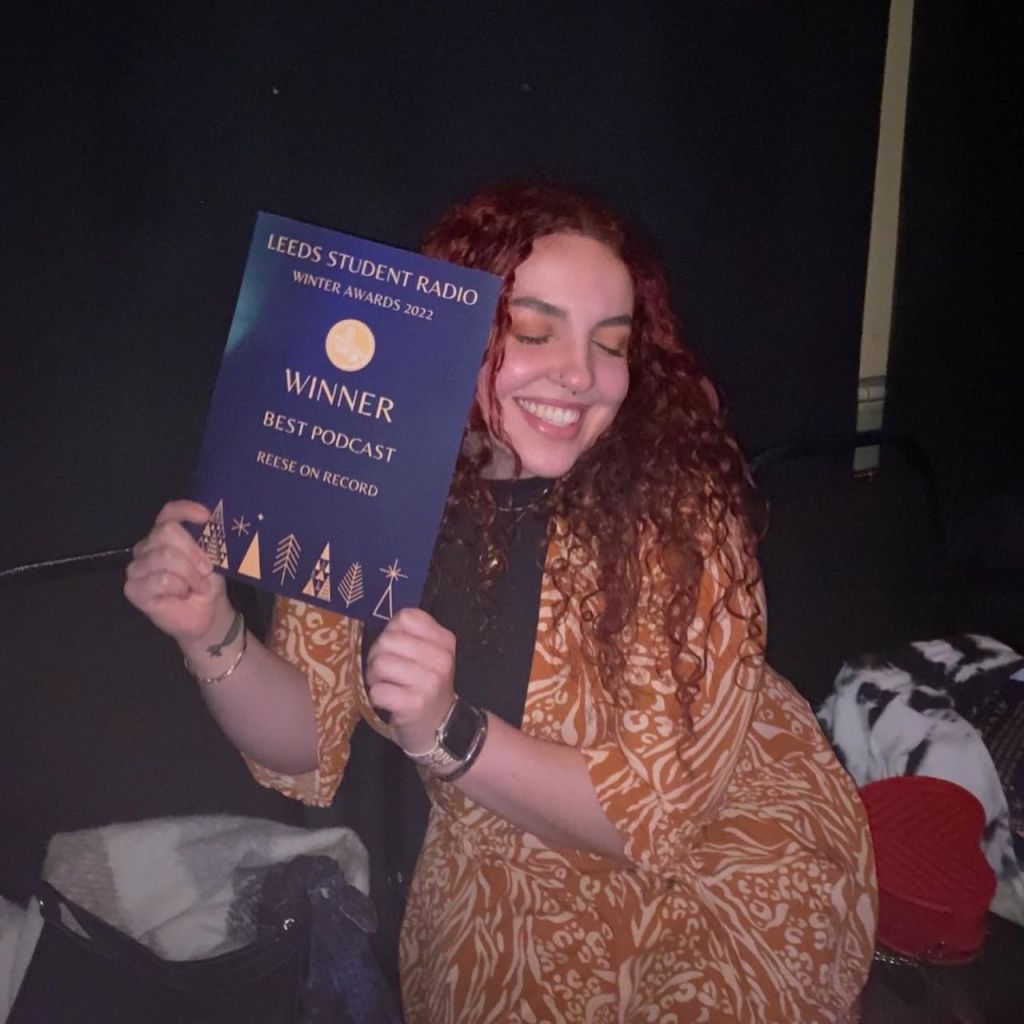 Absolutely over the moon that my podcast, Reese on Record, has WON Best Podcast award 2022 from Leeds Student Radio .